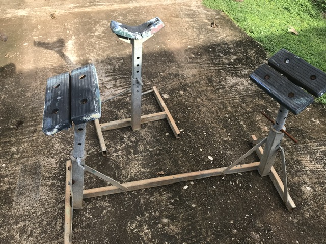 Chandelles réglables pour travaux sur coque bateaux.